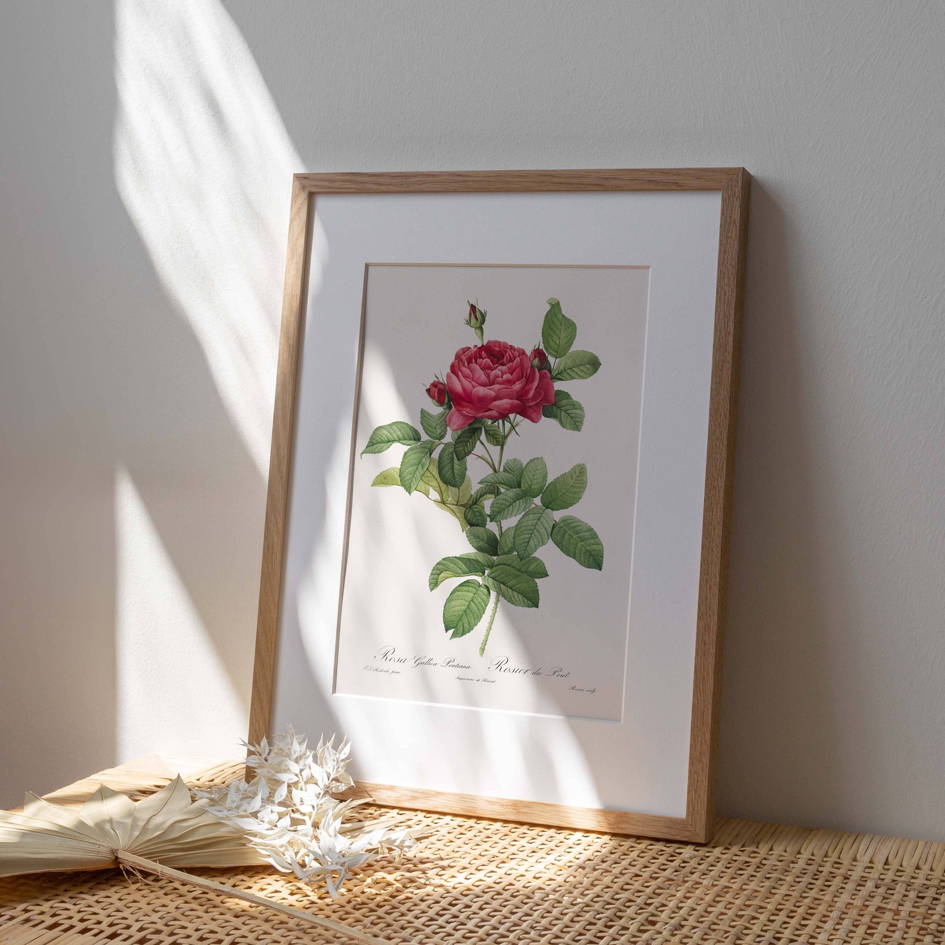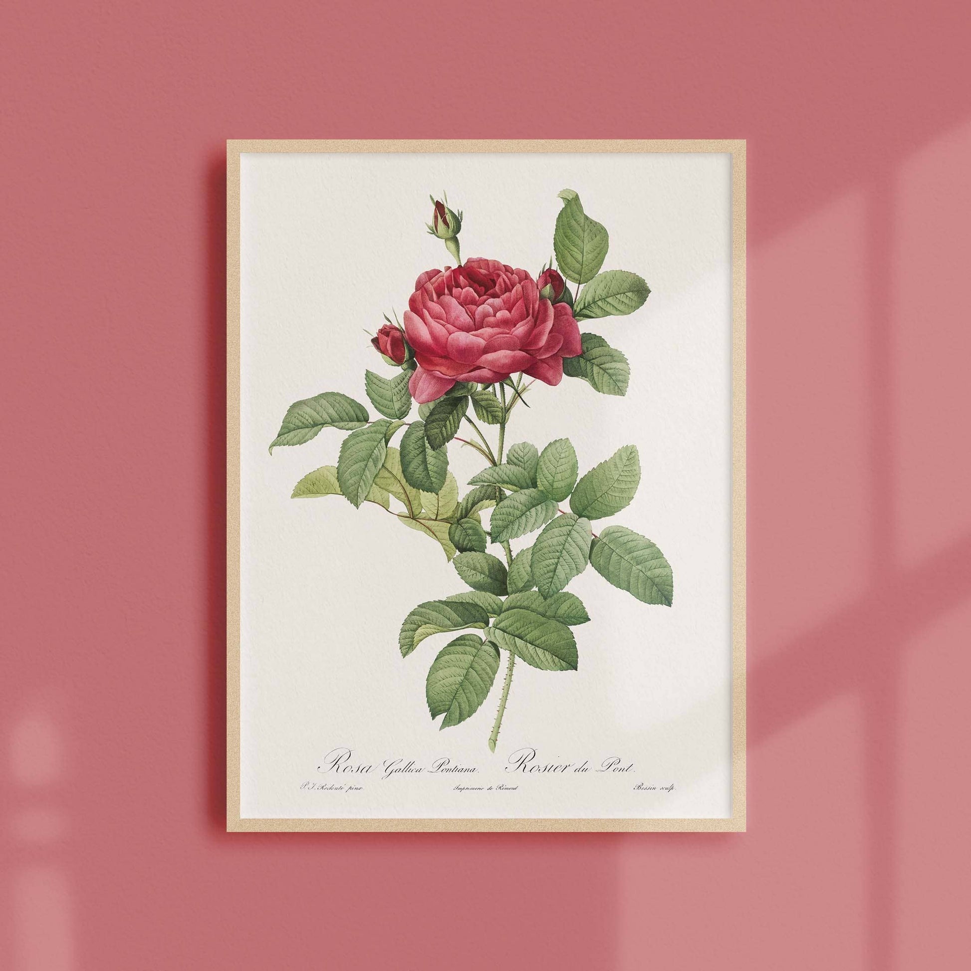 Reproduction d'un dessin botanique tiré du livre « Les Roses » publié en 1817 et illustré par le célèbre peintre et botaniste Pierre-Joseph Redouté.