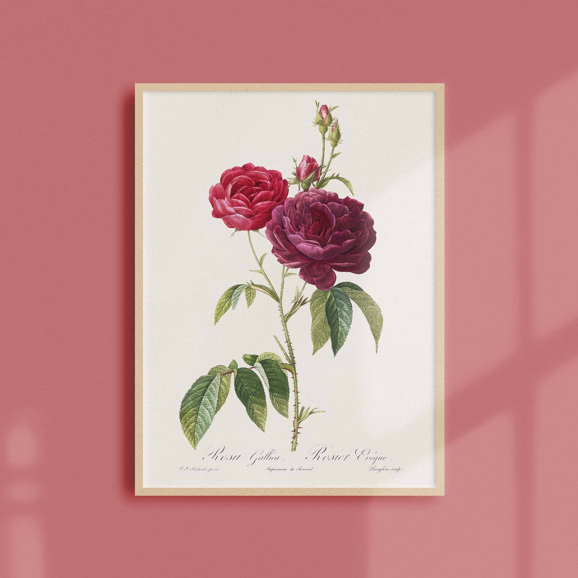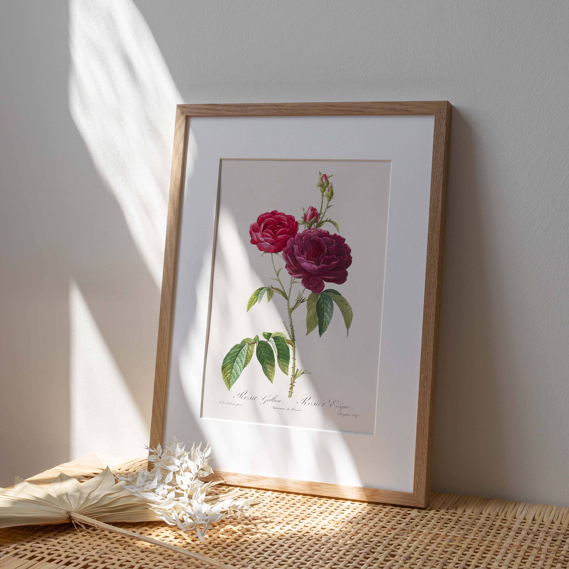 Reproduction d'un dessin botanique tiré du livre « Les Roses » publié en 1817 et illustré par le célèbre peintre et botaniste Pierre-Joseph Redouté.