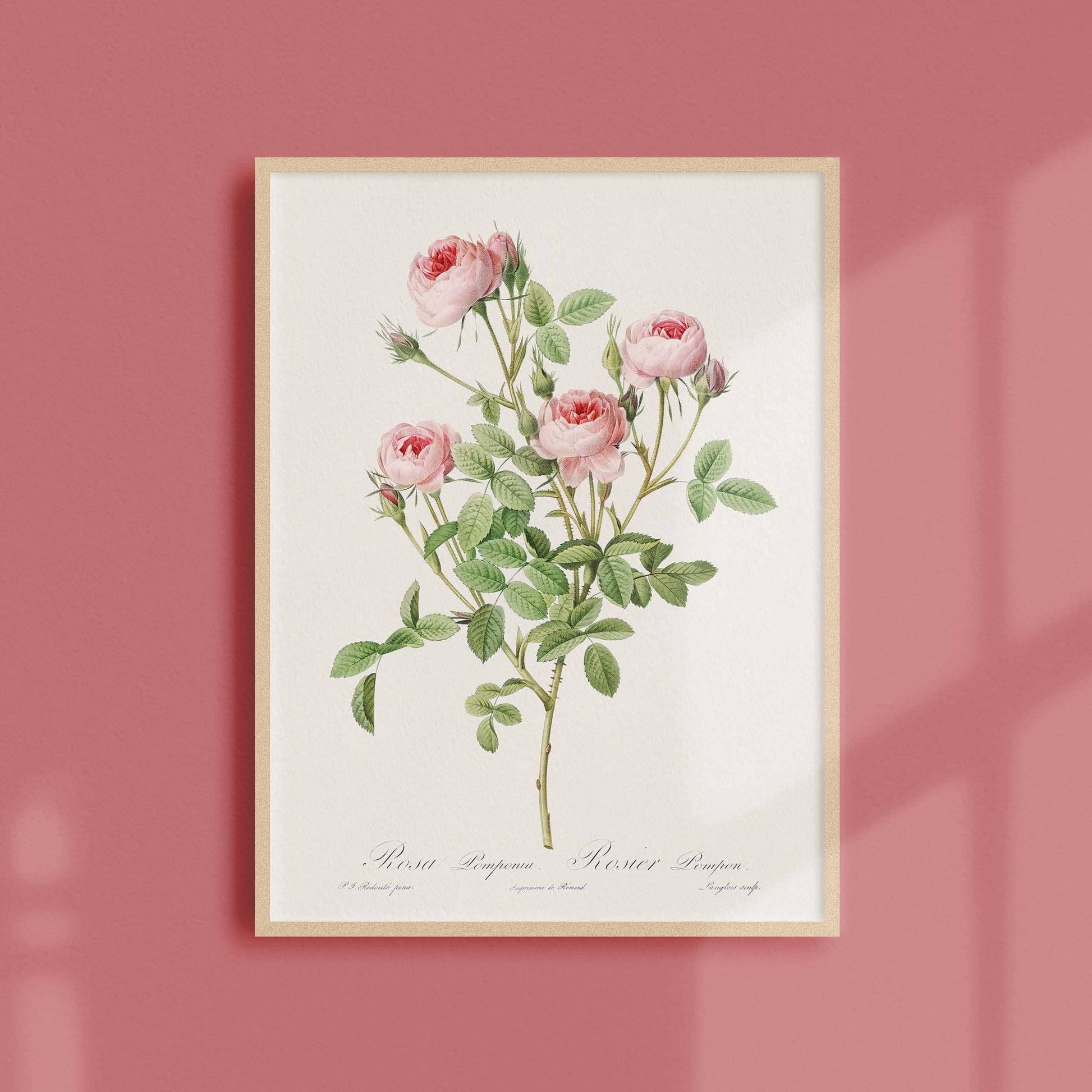 Reproduction d'un dessin botanique tiré du livre « Les Roses » publié en 1817 et illustré par le célèbre peintre et botaniste Pierre-Joseph Redouté.