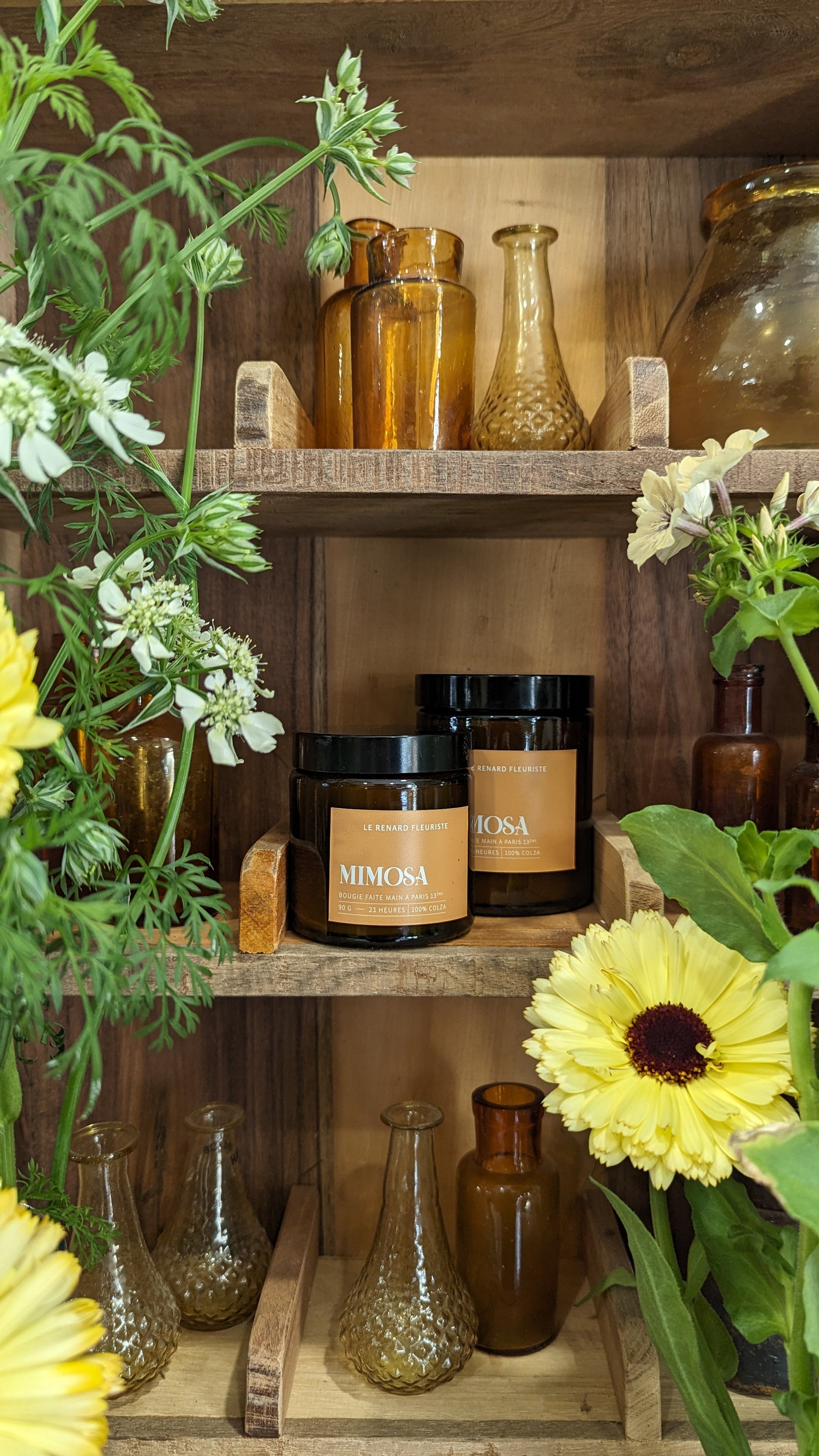 Bougie faite par mes soins dans mon atelier dans le 13ème arrondissement , 100% cire de colza Européenne , parfum de grasse ( Non testé sur les animaux , vegan , sans CMR ni Phtalate )