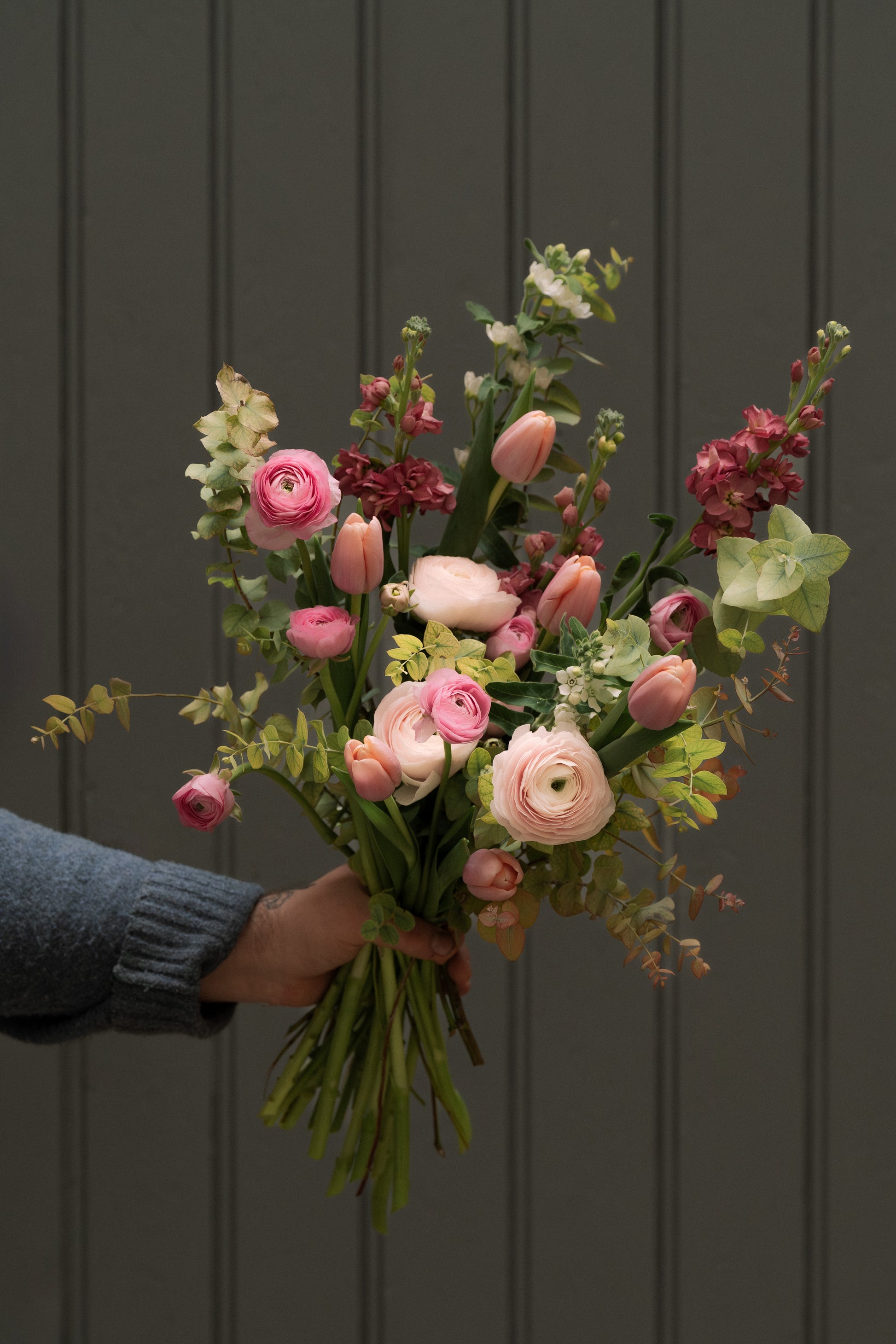 Chaque bouquet est unique : les variétés de fleurs peuvent varier selon la saison et la disponibilité, tout en respectant les tons rosés et l’esprit naturel du bouquet.
