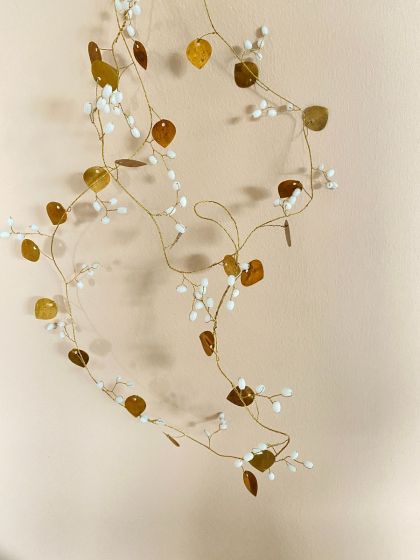 Guirlande faite de perle blanche et de feuille de laiton