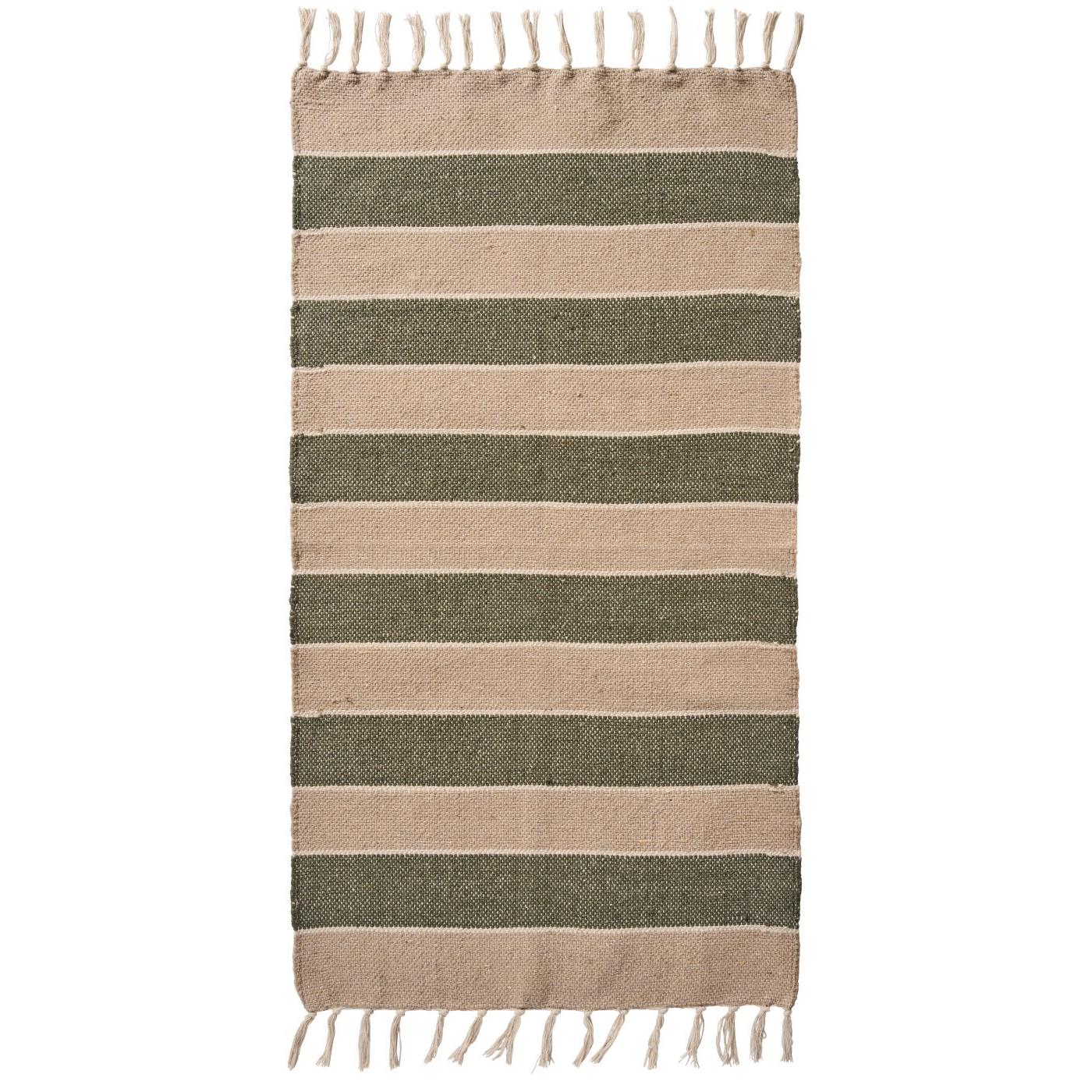 Tapis de sol vert olive et crème – 60x120 cm | 100% coton | Élégance naturelle